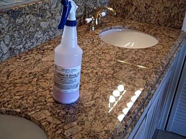 Video above demonstrates what happens when using certain types of cleaners on granite
